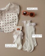 جوراب پاپیونی سفید پاپیون هاش یکم حالت نباتی دارن سایز صفر کف ۸ سانت ساق ۱۵ سانت