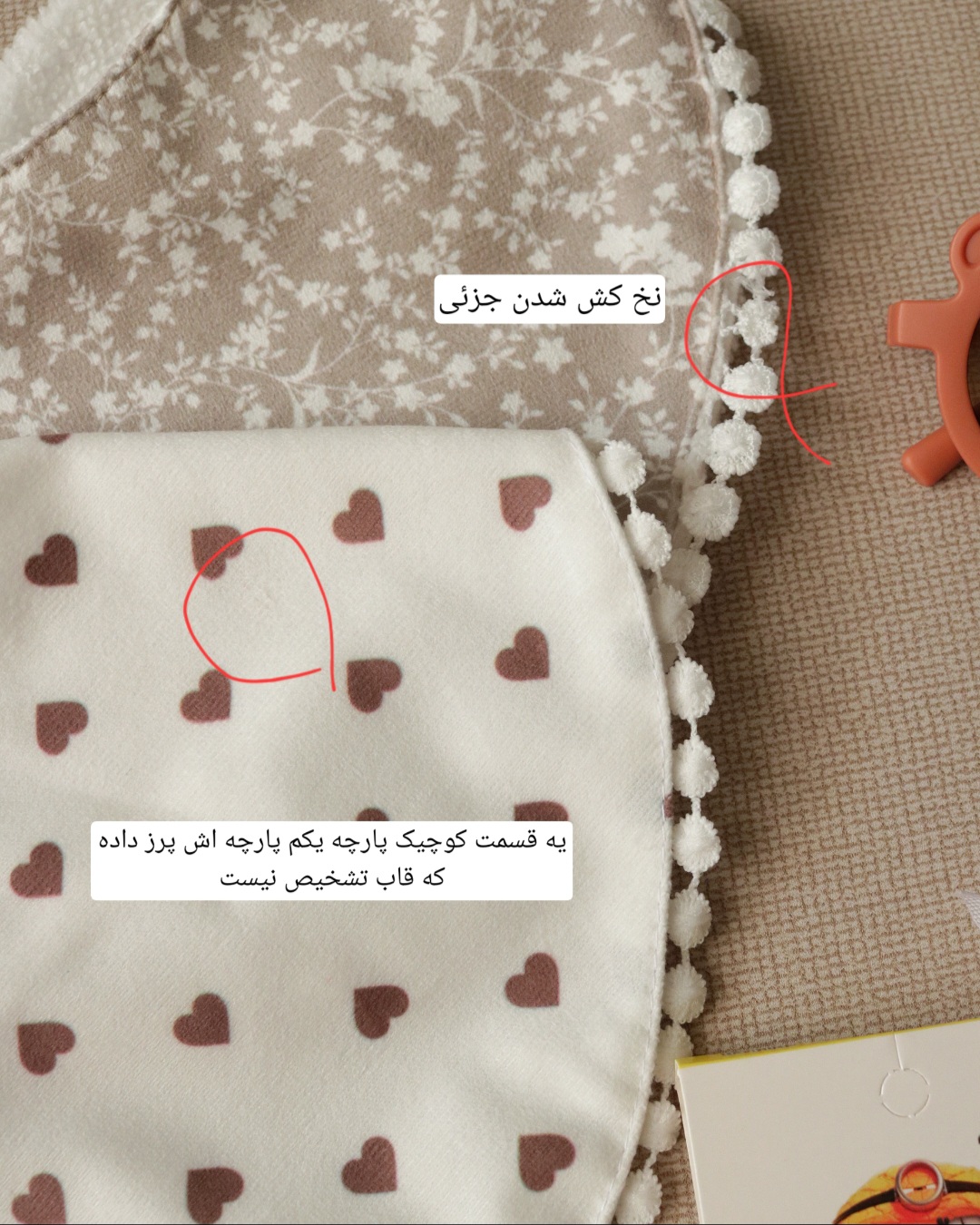 هدبند زرشکی گوشه هدبند پارچه‌اش آسیب دیده حدودا مناسب زیر یکسال